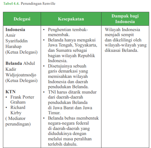 Informasi mengenai perundingan Renville dapat kamu amati pada tabel berikut.